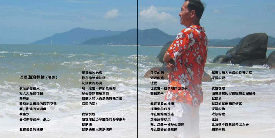 过了几天,他们从另一个城市梭罗坐火车回泗水市。在火车上看到铁路两边绿油油的庄稼——好一片美丽、恬静的热带田园风光!十分怡人,触发起区老师写诗赞美这田园风光的灵感。但是,只写了一会儿,他的思绪就飞回到几天前看到的大海。美丽、宁静、怡人的田园风光给了区老师最好的答案——人同大自然相和就是需要这么平静,这么和谐!这时,文句喷薄而出,一首情怀广博深邃,文字美妙温柔的诗——《峇厘海湾抒情》就在火车上完成了(2006《心灵之旅(二)》之<诗词歌曲创作谈>)。